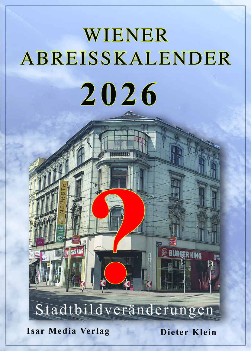 Sollten Sie oder Ihre Freunde Fotos von weiteren Beispielen haben, die in einen Abreisskalender passen würden, senden Sie uns bitte eine kurze Mail an agentur.wien@isar.media oderinfo@dieter-klein.at. Wir danken Ihnen jetzt schon für Ihre Mithilfe die Stadtbildveränderungen weiter zu dokumentieren.